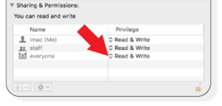 - Set the privileges to "Read & Write" instead of "Read Only," and ensure that the read and write permissions apply to "Everyone."